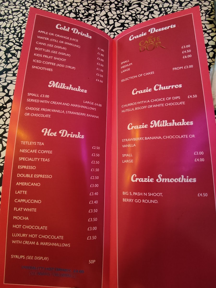 Crazie Crepes Cafe offers a straightforward and inviting menu that focuses on simple café fare and casual bites, ideal for a relaxed meal or a quick takeout. The selection features comforting drinks and a variety of both sweet and savory options that suit different times of day—from a hearty large breakfast to light, satisfying crepes and pancakes.